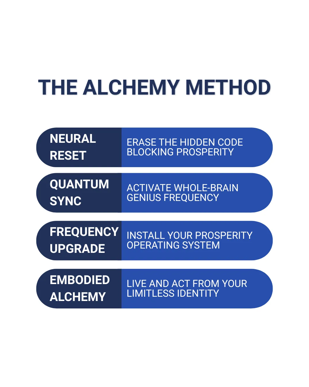 Today, through The Alchemy Method™, I help people all over the world create the same kind of breakthrough—whether in wealth, health, or purpose.